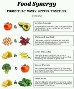 Which included Food Synergy – this science show that some foods work better in combination with other – one example is turmeric that is enhanced by black pepper – there are lots of things that work better in combination with other things so I choose food combos that enhance each-other. 🙂 read more about it here…