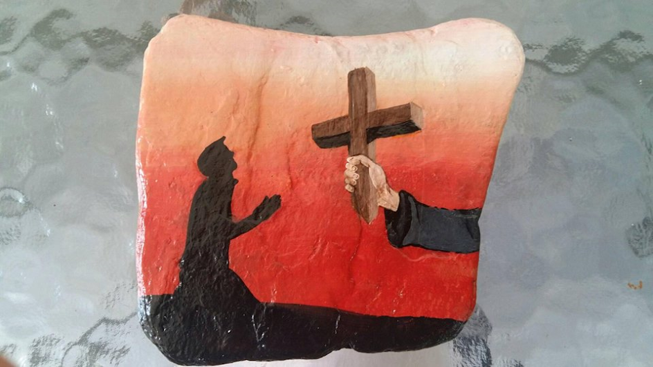translated: Prayer… regret… Pilgrimage… and the power of the cross. . . cross through my father said!