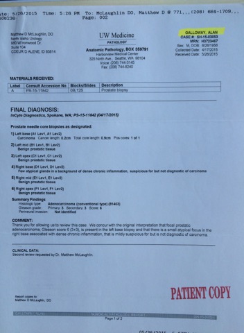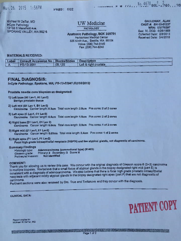 Ken, Here’s the most important part to add to my story. You have the “Before” biopsy which shows 6 out of 12 needle cores positive for prostate cancer. This is the “After” biopsy that shows 1 of 12 positive. Thanks 🙂