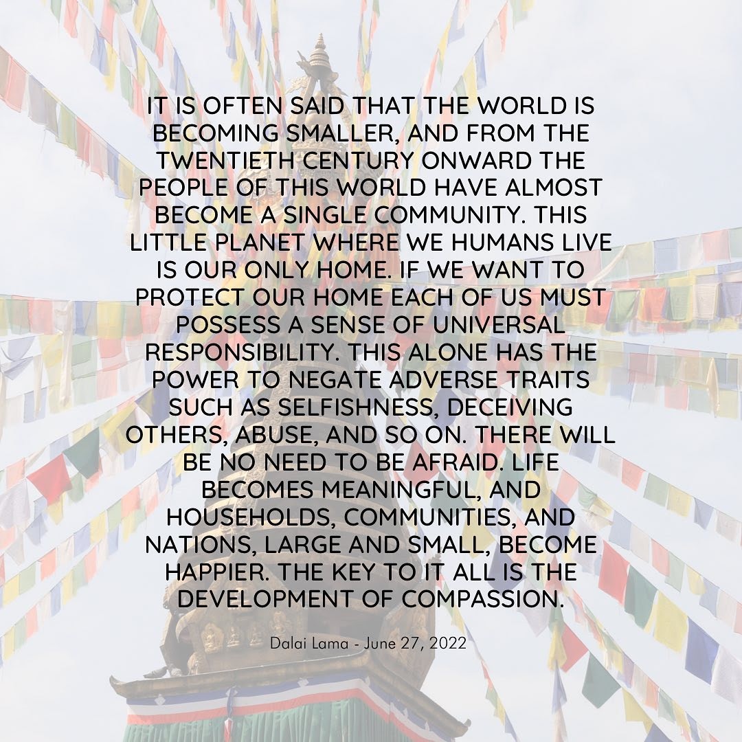 “Whether one believes in a religion or not and whether one believes in rebirth or not. There isn’t anyone who doesn’t appreciate kindness and compassion.” — Dalai Lama