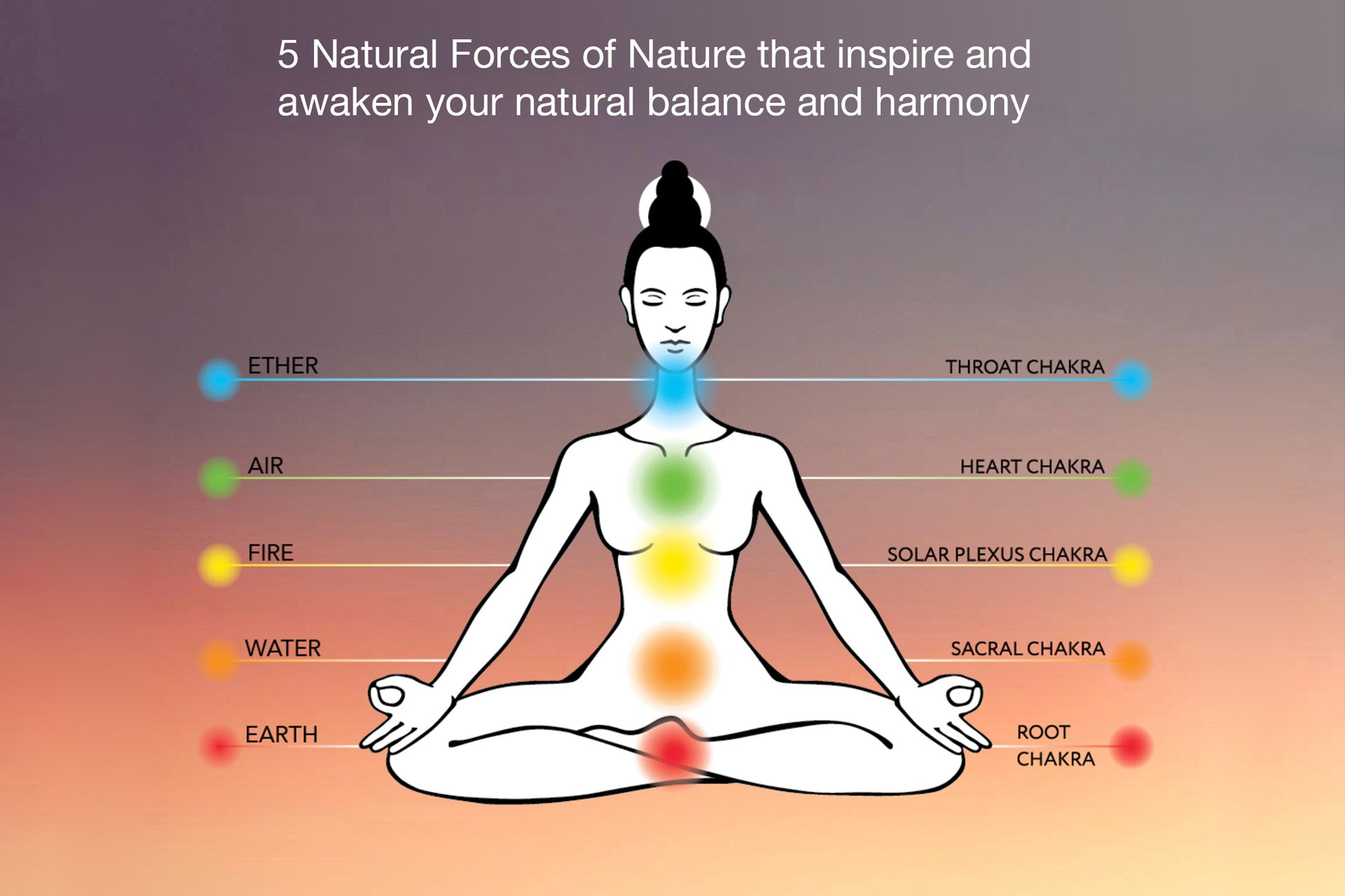 Ether or Akasha ~ is the subtlest of the elements. It is expansive, empty, and has no resistance. It is the source of all matter and houses the space within which it exists. It allows for growth and change to take place. It is the space between your cells, your breath, and your thoughts. As we learn to align ourselves with nature through yoga and meditation, the Akasha will open up to us with its wealth of deep knowledge and immense abundance.