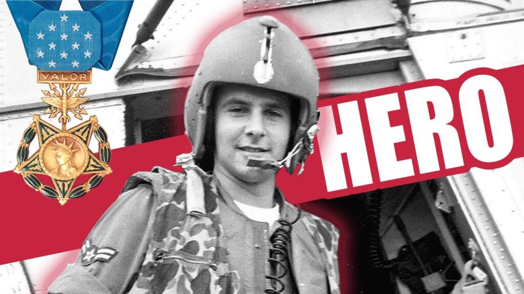Pararescueman William Pitsenbarger helped get nine wounded men hoisted into the helicopters, saving their lives.When one of the helicopters was lowering its litter basket to Pitsenbarger, it was hit by enemy small arms fire and its engine began to lose power. Instead of landing the helicopter in the middle of the battle (or crashing on top of American soldiers), the pilot knew he had to get the helicopter to safety.