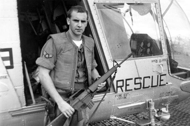 Pitsenbarger, a pararescue medic with Detachment 6, 38th Aerospace Rescue and Recovery Squadron, had been off duty when a call for help came from members of the 1st Infantry Division. He volunteered to go out in the hoist-equipped HH-43 to help organize the rescue effort.
