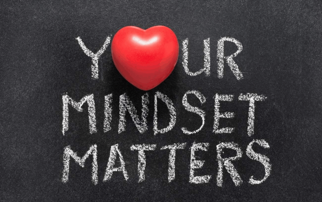 A chalkboard that reads “your mindset matters”.